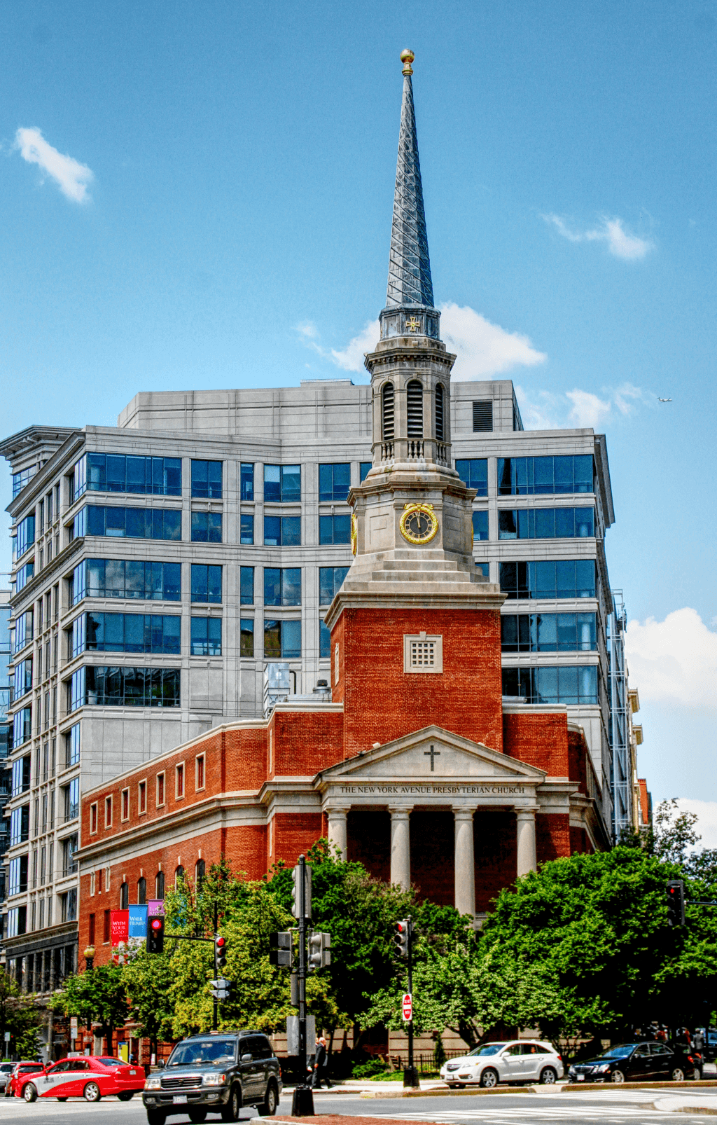 Located four blocks from the White House, the New York Avenue Presbyterian Church is a Protestant church that played an important role in the African-American civil rights movement. It was founded in 1859 and is known for hosting President Abraham Lincoln for worship services before his inauguration and even for his funeral. The church is actively involved in social justice efforts, supporting local schools, operating food programs for the hungry and homeless, and hosting exhibits on African-American history to combat prejudice and discrimination.