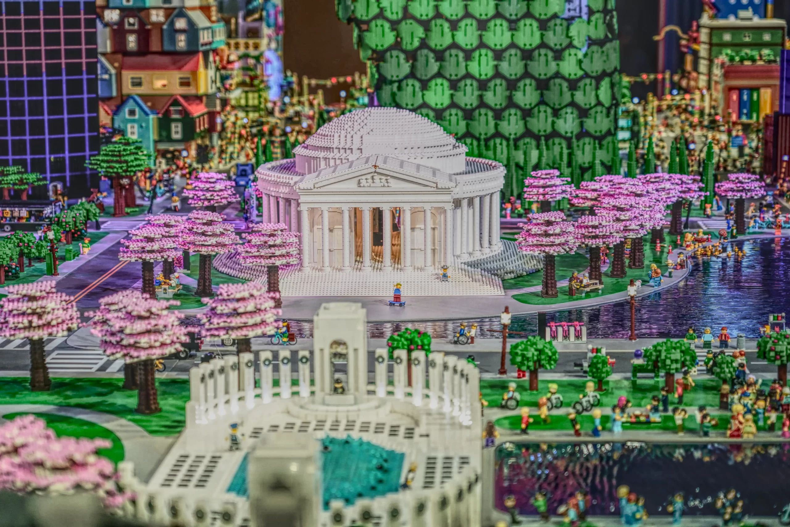 One of the standout features is the meticulously crafted MINILAND® D.C., a miniature replica of Washington D.C.’s most iconic landmarks, entirely built from LEGO bricks. Visitors can marvel at detailed recreations of the Capitol Building, the Lincoln Memorial, and even the White House. The display comes to life with interactive elements and lighting effects that simulate day and night cycles.
