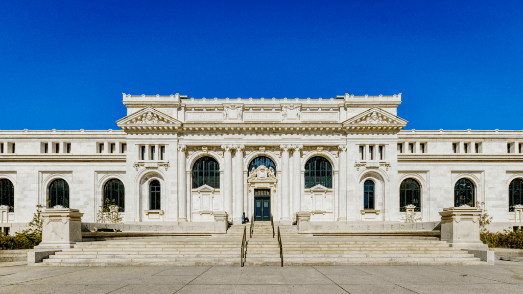 The Washington D.C. History Center is located within the stunning Beaux-Arts-style Carnegie Library. This four-story building sits at the heart of Washington D.C., in Mount Vernon Square. Originally constructed in 1902 as the Washington D.C. Central Public Library, it later became the headquarters of the Washington D.C. History Center.