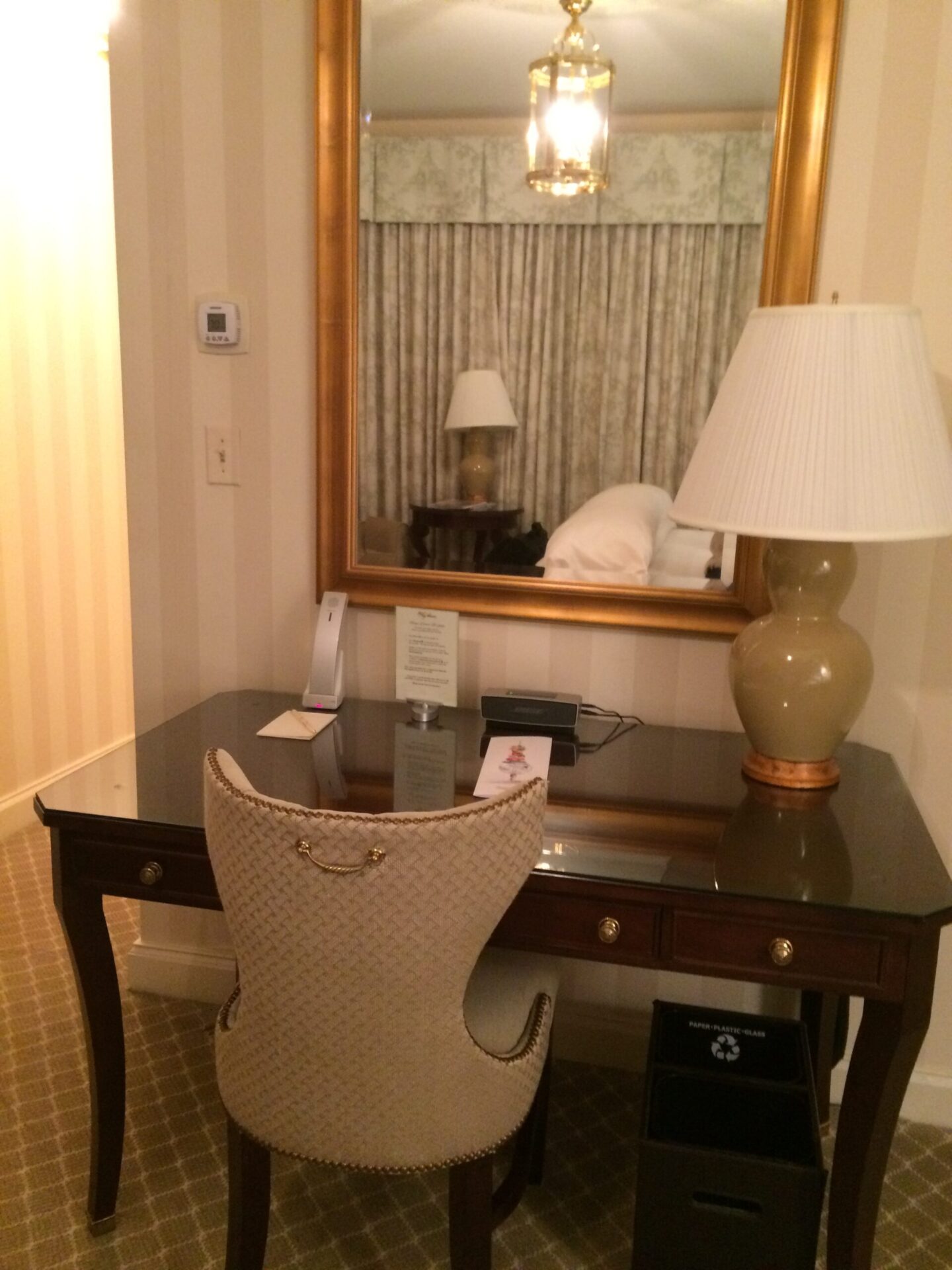 ヘイ・アダムスに限らず、どこのホテルにも部屋のグレードはあり、部屋によって備え付けのアメニティも多少変わることがありますが、ヘイ・アダムスの部屋に備え付けられているアメニティは全室共通で、部屋のグレードによってアメニティの数や質が変わることがありません。