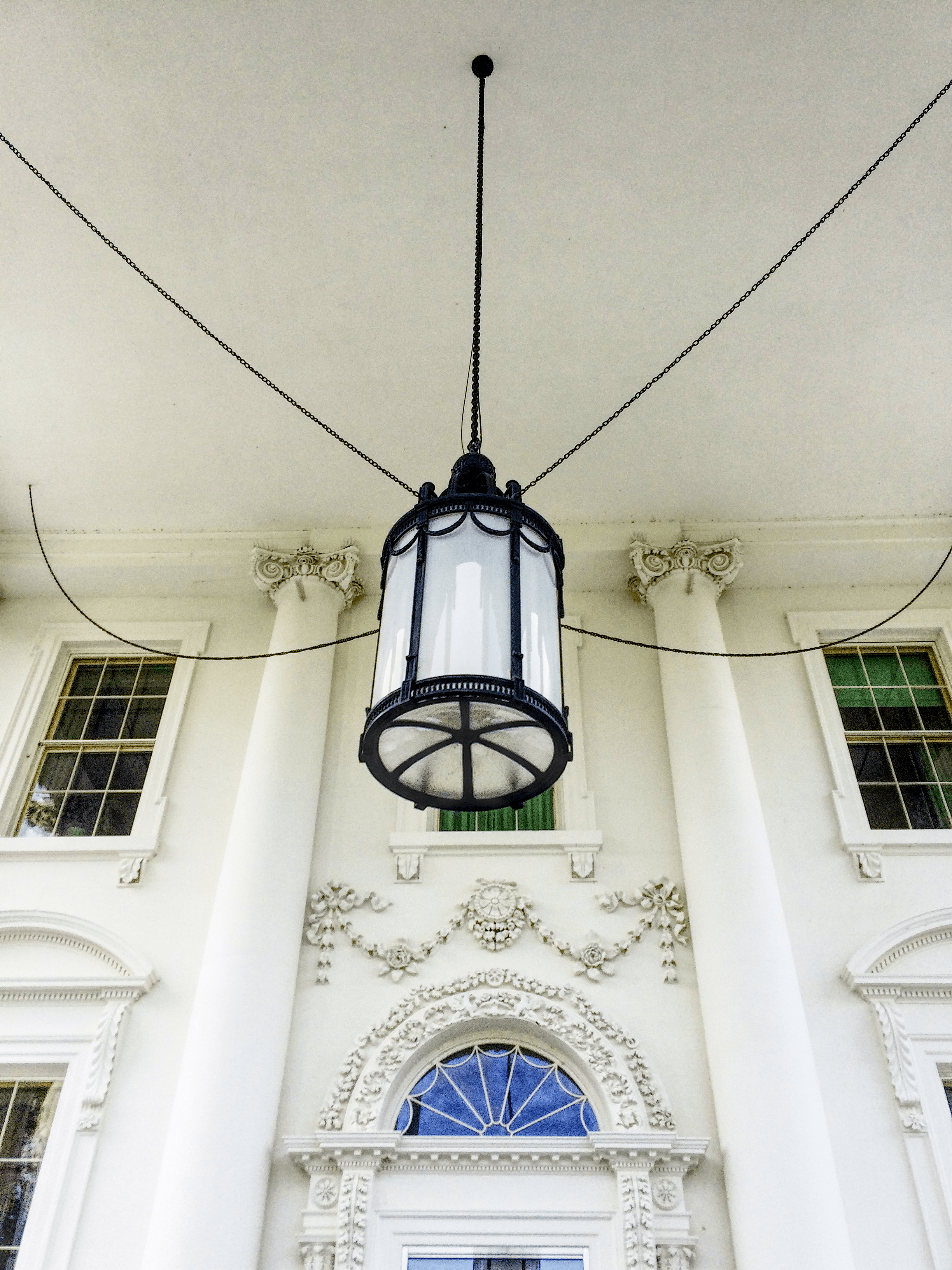 ホワイトハウス北には正面玄関となる北ポルティコ(中廊式玄関)があり、この玄関を出るとイオニアモダン式列柱に圧倒されます。フェデラルスタイルを保ちながら、建物のオリジナルデザインに合わせた作りが特徴的です。ヴィクトリア時代の終わり頃には、ルイ・C・ティファニーによって窓にティファニーグラスが設置されたこともあります。しかし、1902年に改修が行われた際に取り除かれました。