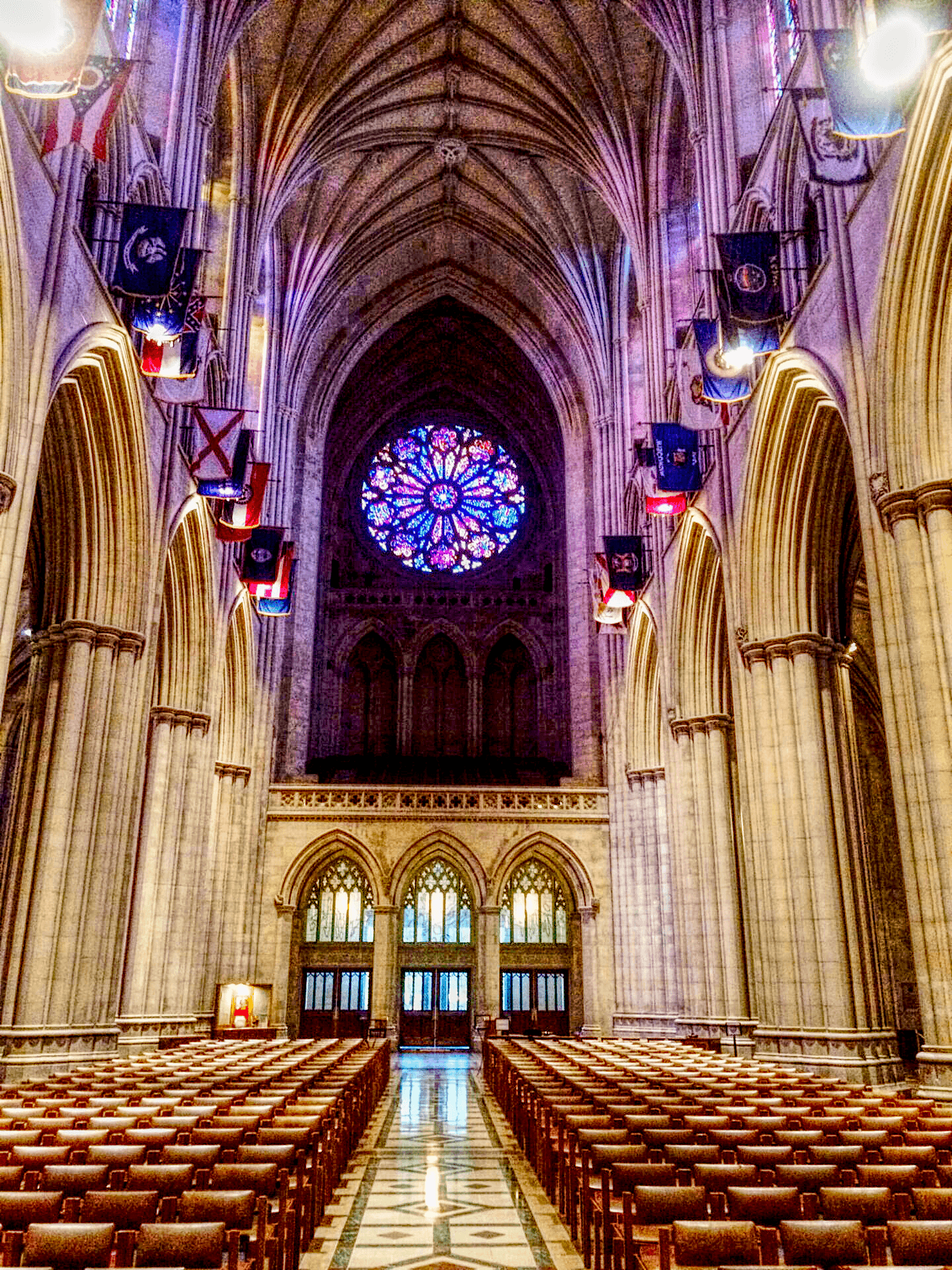 ワシントン大聖堂は全ての人が招かれた超教派の教会です。礼拝堂へは信徒でない方も自由に行き来でき、高い天井や美しいステンドグラスの数々を間近で見ることができます。