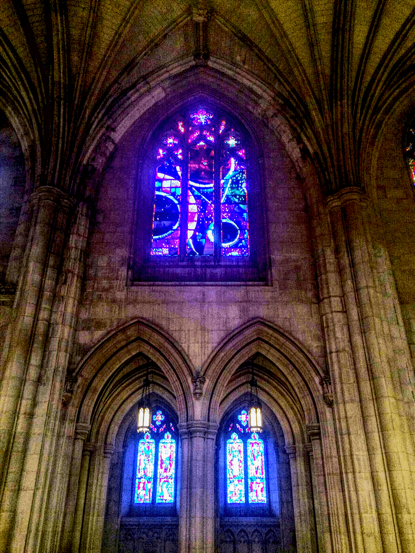 大聖堂の多くのステンドグラスは聖書にちなんだものが多く、ワシントン大聖堂も例外ではありませんが、中にはこういった物があるのも、ここがアメリカを代表する大聖堂であることを物語っています。