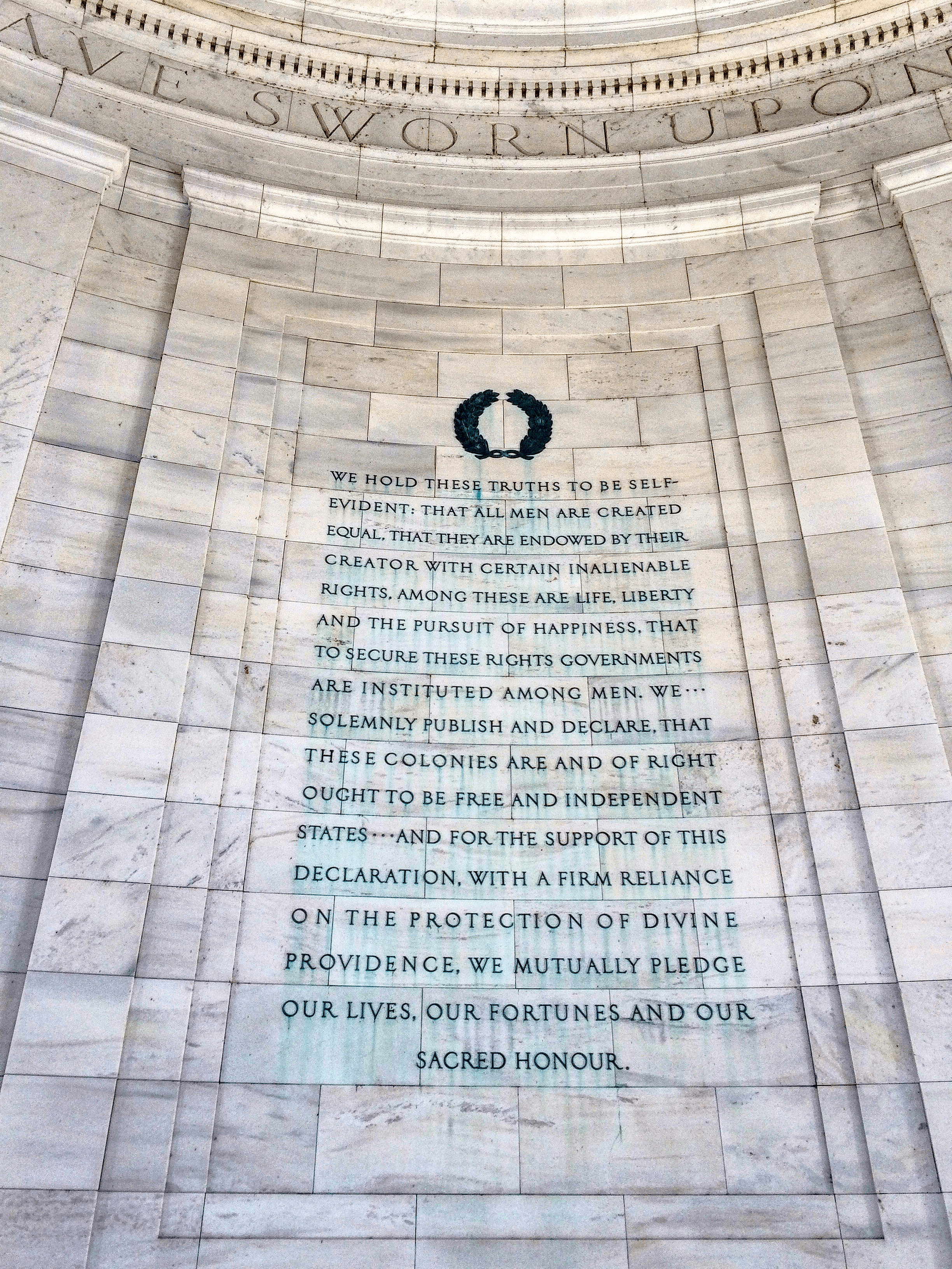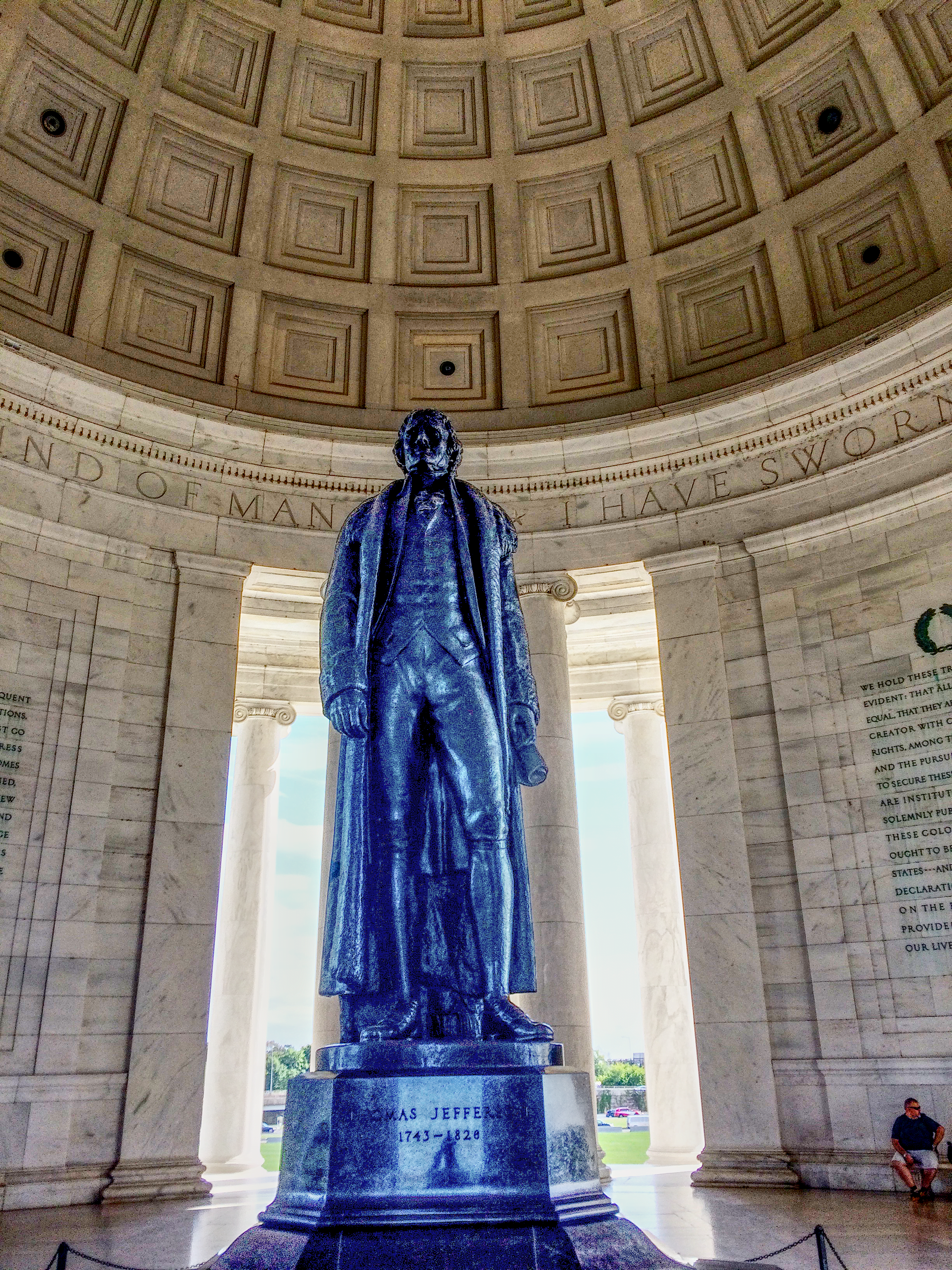 建物の中に入ると中央に高さ6メートルにもなる銅製のジェファーソン大統領の立像があります。周囲には彼が残した手紙や彼の伝記などの文章が抜粋されて刻まれていますが、中でも注目したいのが独立宣言です。